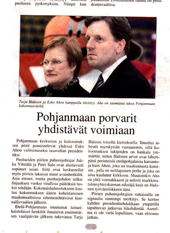 käynnistyttyä ja kannatuksen ollessa tällainen, Halonen