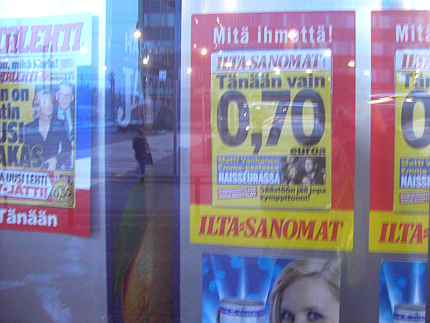 by newspaper. "Lapseni tarvitsevat minua, Matti! Suomalainen tähtihetki - Tottenham ja Teemu Tainio Liigacupin voittajat! ![]() Teemu Tainio astelee alas Lontoon Wembley Stadionin portaita yhdessä joukkuetovereittensa kanssa onnellisena juuri kaulaansa ripustetun kultamitalin kera. Kuva: Pertti Manninen. Suomalainen tähtihetki Iltapäivälehtien valinta tänään: "Huoripukki ja murhamies". ![]() Kuva: Keskisuomalaisen maaseutupaikkakunnan LIDL-ovella maanantaina 2008-02-18 kuuden kieppeissä. Pertti Manninen. Iltapäivälehtien valinta tänään: "Huoripukki ja murhamies". Iltalehti: "Suhdetta puidaan ulkomailla VANHASTA PILKATAAN" Ilta-Sanomat: "Halonen ei armahtanut HEINOJEN MURHAAJAA" Lehtien etusivut: Iltalehti: "Tappio oikeudessa olisi kohtalokas MAINE MENEE Ilta-Sanomat: "Halonen ei armahtanut HEINOJEN MURHAAJAA" Iltapäivälehtien valinta tänään: "Huoripukki ja murhamies". Pääministeri (Statsministern, Finnish PM)