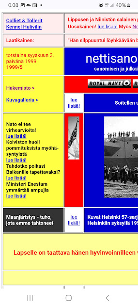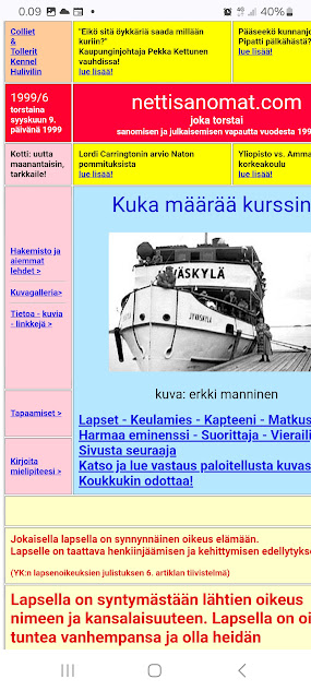 Jokaiselle etusivulle: LINKIT | Sanomisen ja julkaisemisen vapautta vuodesta 1999. |