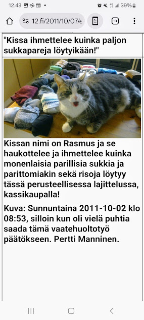 "Kissa ihmettelee kuinka paljon sukkapareja löytyikään!"