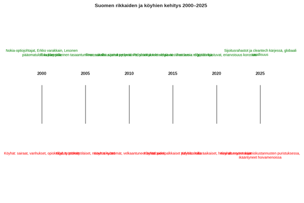 Tässä on selkeä aikajana, joka kuvaa Suomen rikkaiden ja köyhien kehitystä vuosina 2000–2025. 📅 Aikajana: Rikkaat ja köyhät Suomessa