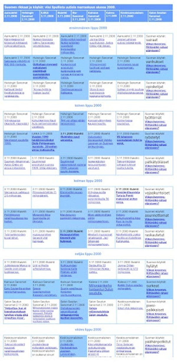 Marraskuussa 2000 suomalaiset lehdet julkaisivat verolistat, jotka paljastivat Nokian optioilla rikastuneet johtajat ja yrityskauppojen voittajat. Jorma Ollila nousi suurituloisimmaksi, Aatos Erkko pysyi varakkaimpana ja Veikko Lesonen hallitsi pääomatulojen kärjessä. Samalla rinnalle nostettiin köyhien arki: sairaat, vanhukset, opiskelijat ja työttömät kysyivät, riittävätkö rahat elämiseen.