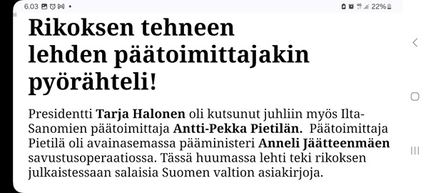 2025. Marraskuu. Pääkirjoitus. Suomi vedettiin mukaan ilman lupaa – missä on presidentin ääni? Lue! |