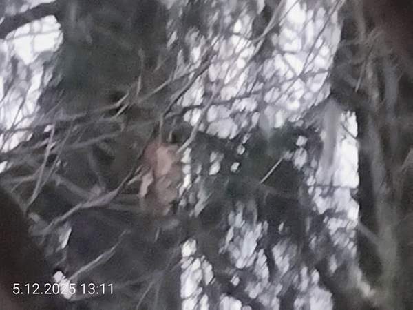 Orava vauhdissa omassa puussaan. Uusimaa. Kirkkonummi. Kauhala. Björkdal. Perjantai 5.12.2025 13:11. Kuva Pertti Manninen ruudun takaa. |