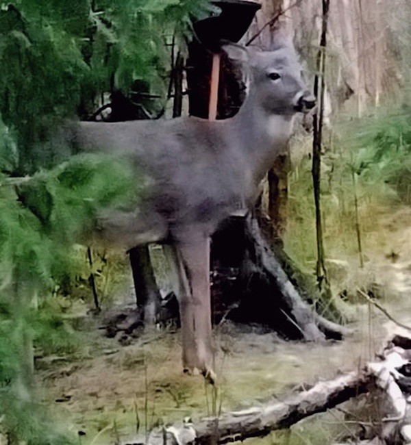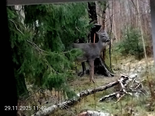 Peurakin on löytänyt lintujen ruokintapaikalle siemeniä ja pähkinöita mutustelemaan nyt taas ihan lumettomassa maassa.