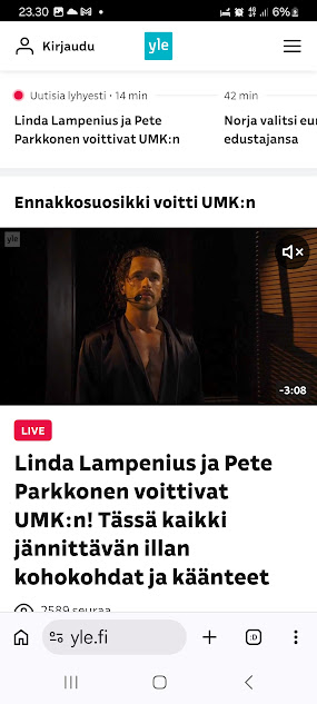 Hetki kuutena hetkenä hetkeä myöhemmin. Kuva Ylen lähetyksestä lauantaina 7.2,2026 21:24, Pertti Manninen. |