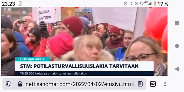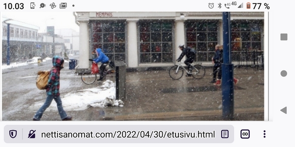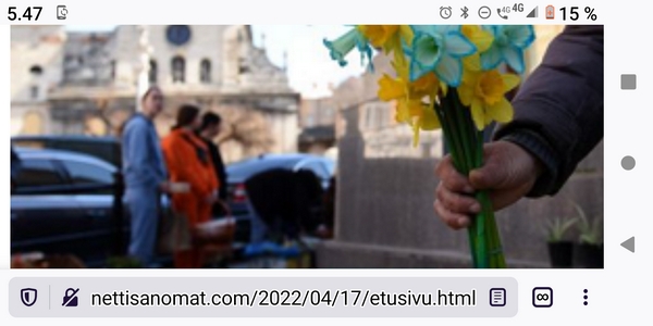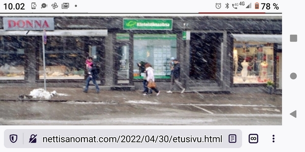 Kuvat 2022.04 Huhtikuu 2022/04/01 N:o 2486 - "Tosi muoti". 18.01.2006 tammikuun keskiviikkona klo 14.47. Jyväskylä. Torikeskus. 2022/04/02 N:o 2487 - Hoitajien lakko ja Ylen uutiset. "Lakkoilevat hoitajat pillastuivat, kun hallitus suunnittelee lakia, joka määräisi hoitajia takaisin töihin potilasturvallisuuden takia." Yle Uutiset 1.4.2022. Kuvasarja. 2022/04/02 N:o 2487 - Venäjän hyökkäys. Mariupolista pakenee siviilejä. Deti (Lapsia). Yle Uutiset 1.4.2022. Kuvat Maanantaina 4.4.2022. 2022/04/04 N:o 2488 - Leif Salmén. 2005. Voiton päivä? Kolumni.