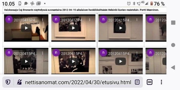 Omakuva: Vahingonlaukaus puhelinta näpräillessä torstaina 21.4.2022 12:00 Kirkkonummen Veikkolassa harvinaisen lämpöisenä huhtikuun päivänä, +15. 2022/04/12 N:o 2492 - Året var 1957. Dokumentär SVT2. "Förbjud atomvapnen". - (9.1.2007). Kuvat perjantaina 29.4.2022. 2022/04/27 N:o 2498 - Paths of Glory. Kuva. 2022/04/27 N:o 2498 - Kansallinen