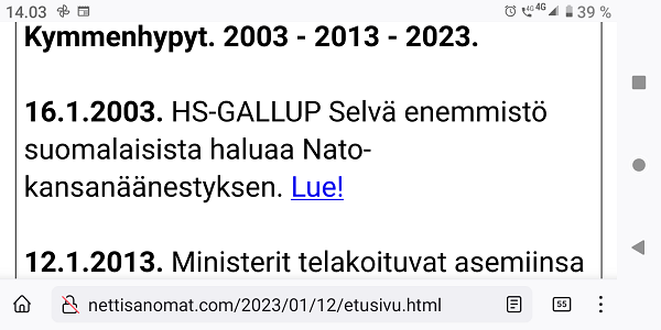1.1.2023- 12.1.2023 | Jokaiselle etusivulle: Nettisanomat.com vuodesta 1999 |